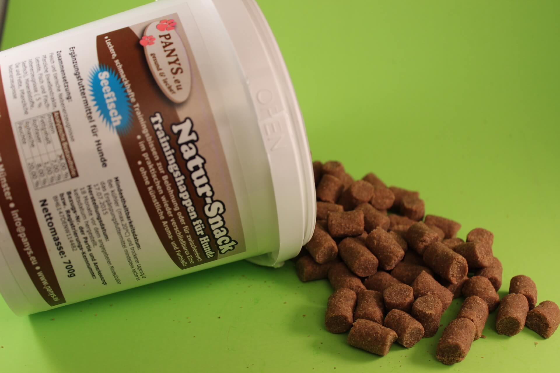 sind die Trainingshappen Seefisch wegen ihrer Größe gedacht. PANYS Trainingshappen sind schön weich und lösen sich schnell auf, was für das Hundetraining sehr wichtig ist. Natürlich können die PANYS Trainingshappen auch als weiche, schmackhafte Leckerchen für zwischendurch verwendet werden.